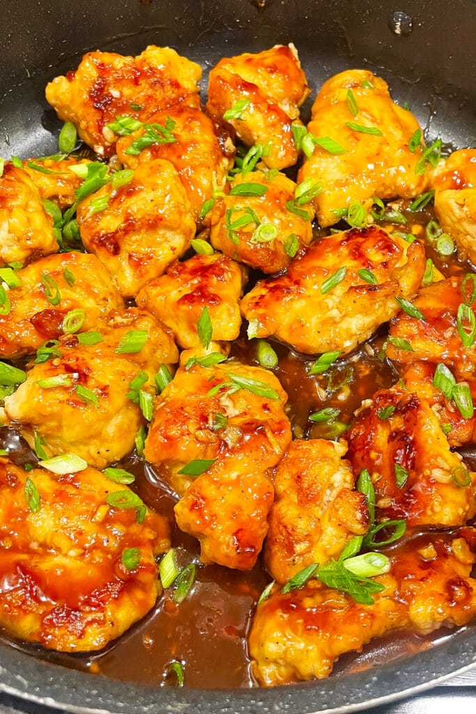 4. Coat and Serve: Toss the crispy chicken bites in the sauce, ensuring each piece is fully coated. Garnish with fresh parsley and sesame seeds for extra texture and flavor.